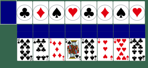 The Double Easthaven tableau is made up of 8 columns that initially have 3 cards, with the top cards on each column face-up.