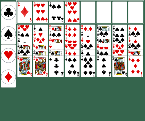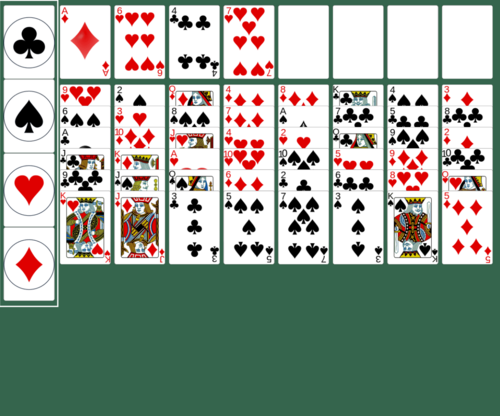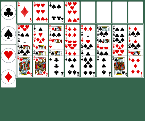The Eight Off tableau is made up of 8 columns that initially have 6 cards. All of the cards in the tableau are face-up.