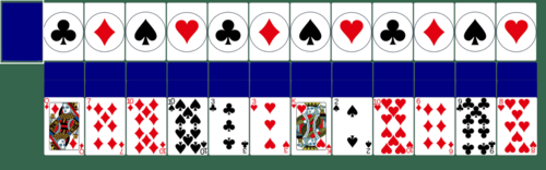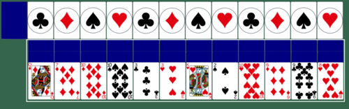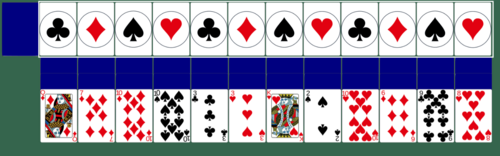 The Triple Easthaven tableau is made up of 12 columns that initially have 3 cards with the top card on each column face-up.